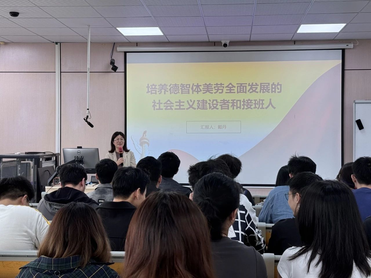 要在坚定理想信念上下功夫。戴丹老师提到“社会主义建设者和接班人,定语是‘社会主义’,这是我们对培养什么人的本质规定”。我们培养的人,必须树立共产主义远大理想和中国特色社会主义共同理想。只有社会主义才能救中国,只有坚持和发展中国特色社会主义才能实现中华民族伟大复兴。