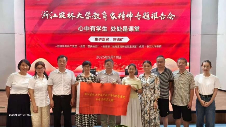 为深入学习贯彻习近平总书记关于教育的重要论述和全国教育大会精神,大力弘扬教育家精神,提升学科教师的师德师风素养,9月10日下午,数学学科党支部组织教师参加学校教育家精神专题报告会,一起倾听全国优秀共产党员、全国“最美教师”、教育部“教育家精神巡回宣讲团”成员、浙江大学数学科学学院苏德矿教授题为“心中有学生,处处是课堂”的专题报告。