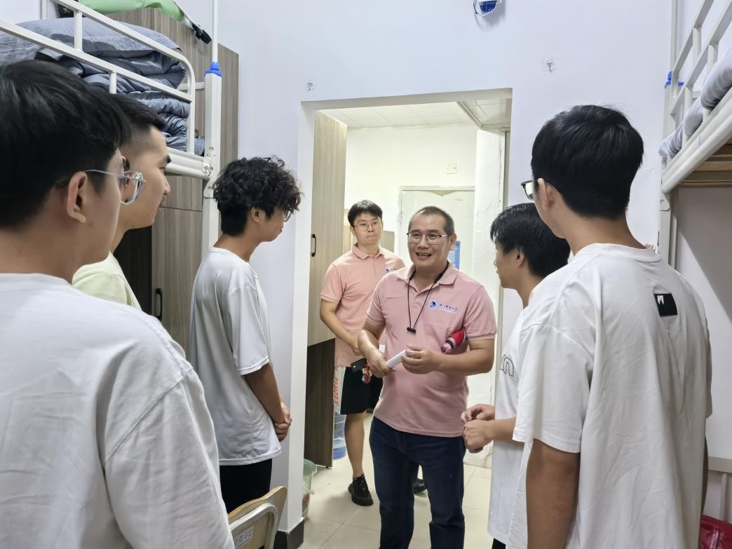 为了解威廉希尔2025级新生入学报到、入住寝室的情况,帮助新生更快适应大学环境,融入校园生活。9月13日晚,学院党委书记何振波、党委副书记孙晓民、副院长张洪涛、胡军国在学院辅导员的陪同下深入学生寝室,与2025级新生进行亲密交流。