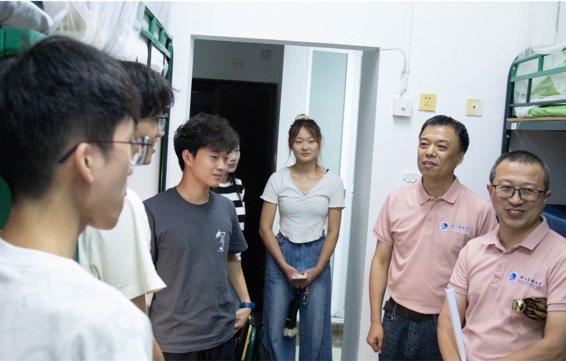 在走访过程中,何振波询问了新生们的入学入住情况,针对新生未来规划给出了建议。他强调,新同学们应尽快适应新环境,明确学习发展目标,也鼓励同学们走出宿舍,走进操场,做“无体艺,不农林”的践行者。孙晓民针对校园安全问题,提醒新生们注意保管重要财物,提高电信防诈意识,以免造成不必要的损失;张洪涛通过唠家常,聊爱好的方式,拉近与新生的距离,叮嘱同学们要与室友和睦相处、互帮互助,一起度过愉快的大学四年。胡军国勉励研究生新生,在未来三年里,多读文献,潜心钻研,在科研实践中不断精进自己。