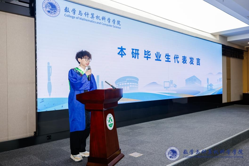 大数据211班的连俊博和数计研222班赵泽宇代表2025届本、研毕业生发言,深情回顾了在浙农林大的美好求学时光,畅谈了对未来的憧憬与规划,并真挚表达了对母校、学院以及全体老师同学的感恩与感激之情。