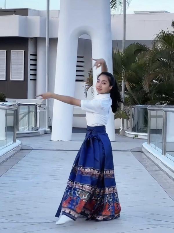 实践活动开展之前,小组成员林池荷发挥自身在中国传统舞蹈上的特产,身着马面裙,录制了一段优美的传统舞蹈。此舞蹈是开展街头采访的核心视听素材,结合音乐、服饰、舞蹈等多个元素充分展现中国传统文化的独特魅力。