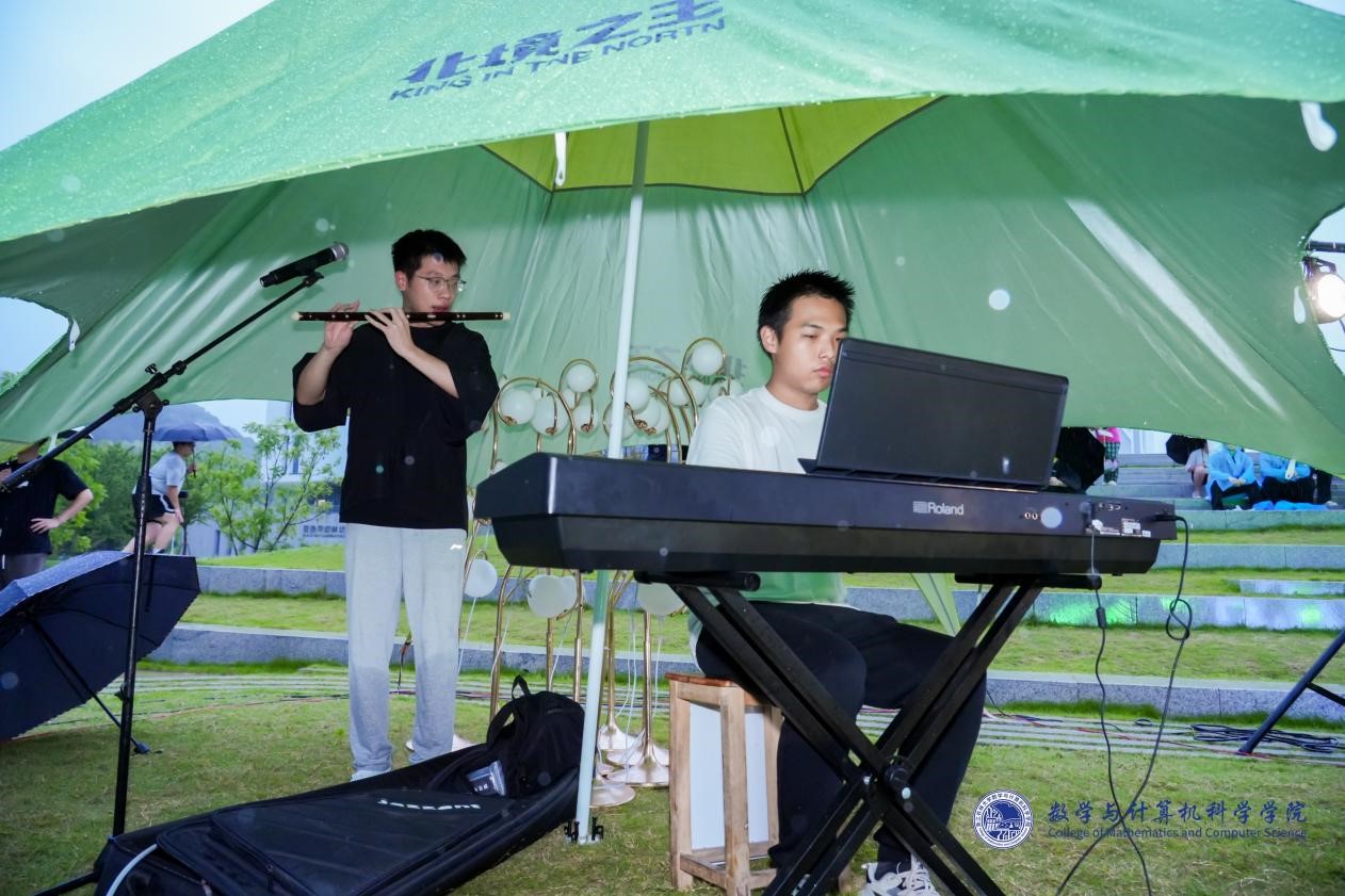 同时,学院团学组织举办“夏至π对”毕业集市和草地音乐节活动,虽时有风雨,依然吸引了诸多毕业生和在校生参与其中,现场氛围随歌舞节目而高涨,彰显了数计学子的青春活力与信心。