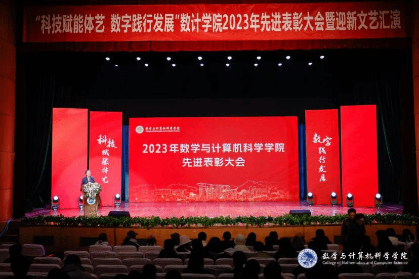 为表彰先进、树立典型,发挥榜样的示范引领作用,激励广大学生创优争先,12月23日晚,威廉希尔在东湖校区活动中心影剧院举行“科技赋能体艺 数字践行发展”2023年先进表彰大会暨迎新文艺汇演。校党委宣传部副部长、新闻中心主任陈胜伟,校团委书记魏玲玲,教务处副处长吴鹏等出席了活动,威廉希尔党政领导、师生代表参加了活动。表彰大会由威廉希尔党委副书记黄萍主持。