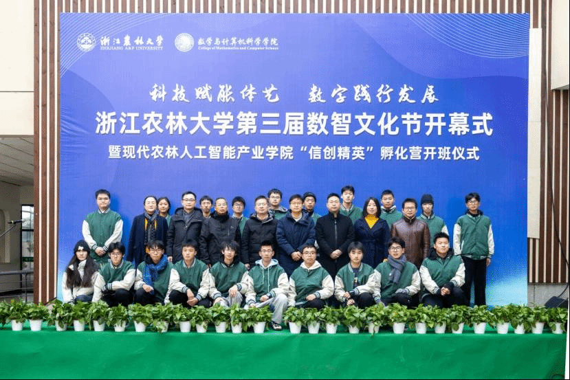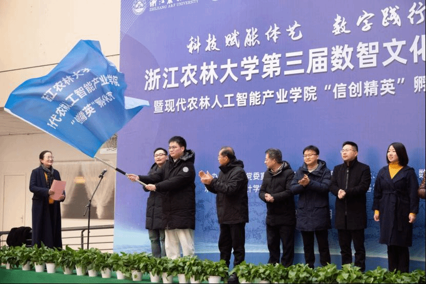孵化营导师汪其顺、陈梁为学员代表授营旗、赠书,首届现代农林人工智能产业学院“信创精英”孵化营正始启动。