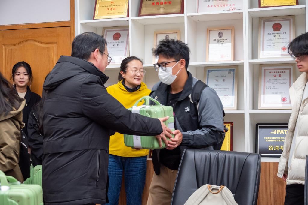 随后,学院领导与辅导员一起为同学们送上“温暖礼包”,希望学院的关怀和关爱能够让同学们在严寒冬日里感受到如暖阳初照般的温情。