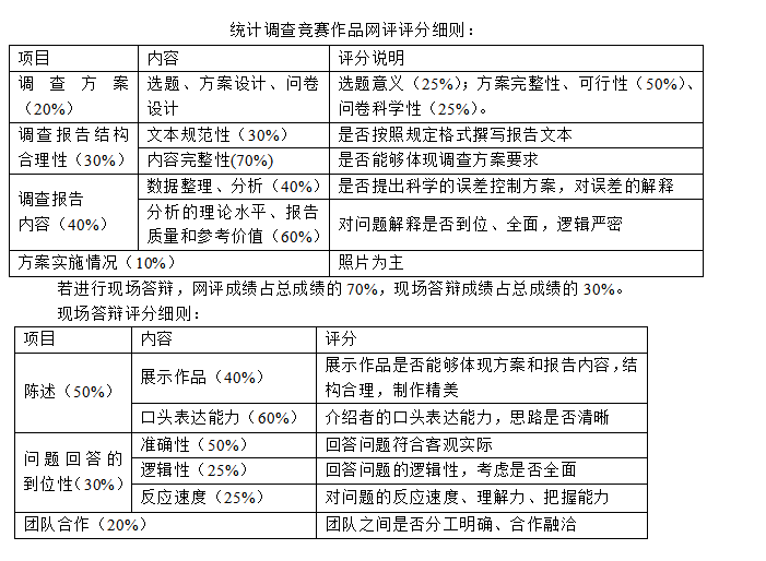 统计调查竞赛作品网评评分细则: