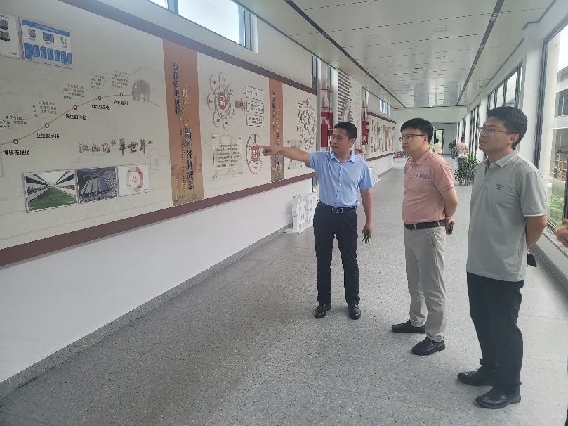 冯海林一行参观了峡口镇枫石村水培牧草基地、党群文化广场、“乡村大脑”、共富工坊等地。每到一处,冯海林一行详细了解峡口镇发展基本情况、存在问题和未来规划等,为后续与峡口镇开展项目合作做好准备。