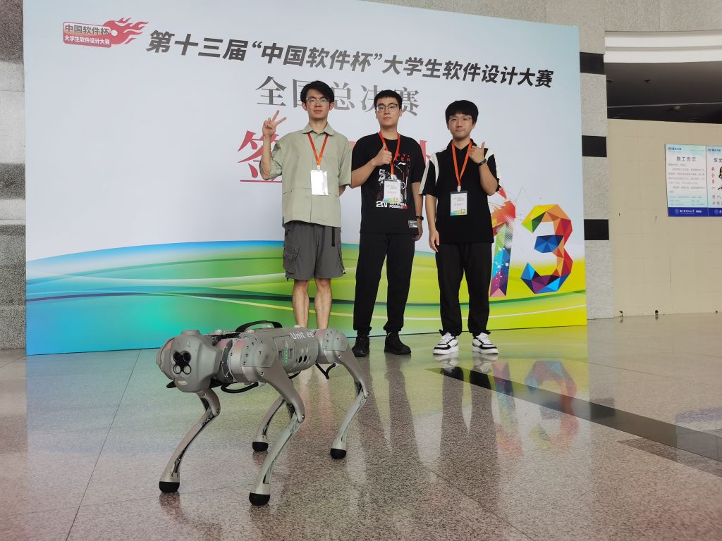 本届大赛吸引了全国31个省份的800多所高校、5801支赛队参与,经过区域赛和初赛的严格筛选,355支赛队晋级决赛。在南京举行的现场总决赛中,我校团队在A9赛道“基于文心大模型的智能四足机器狗森林巡检系统开发”中以全国第二的成绩获得二等奖,该团队由杜增杰(研究生)、郑伊磊(本科生)、袁鑫(本科生)三位同学组成,吴达胜教授担任指导教师。