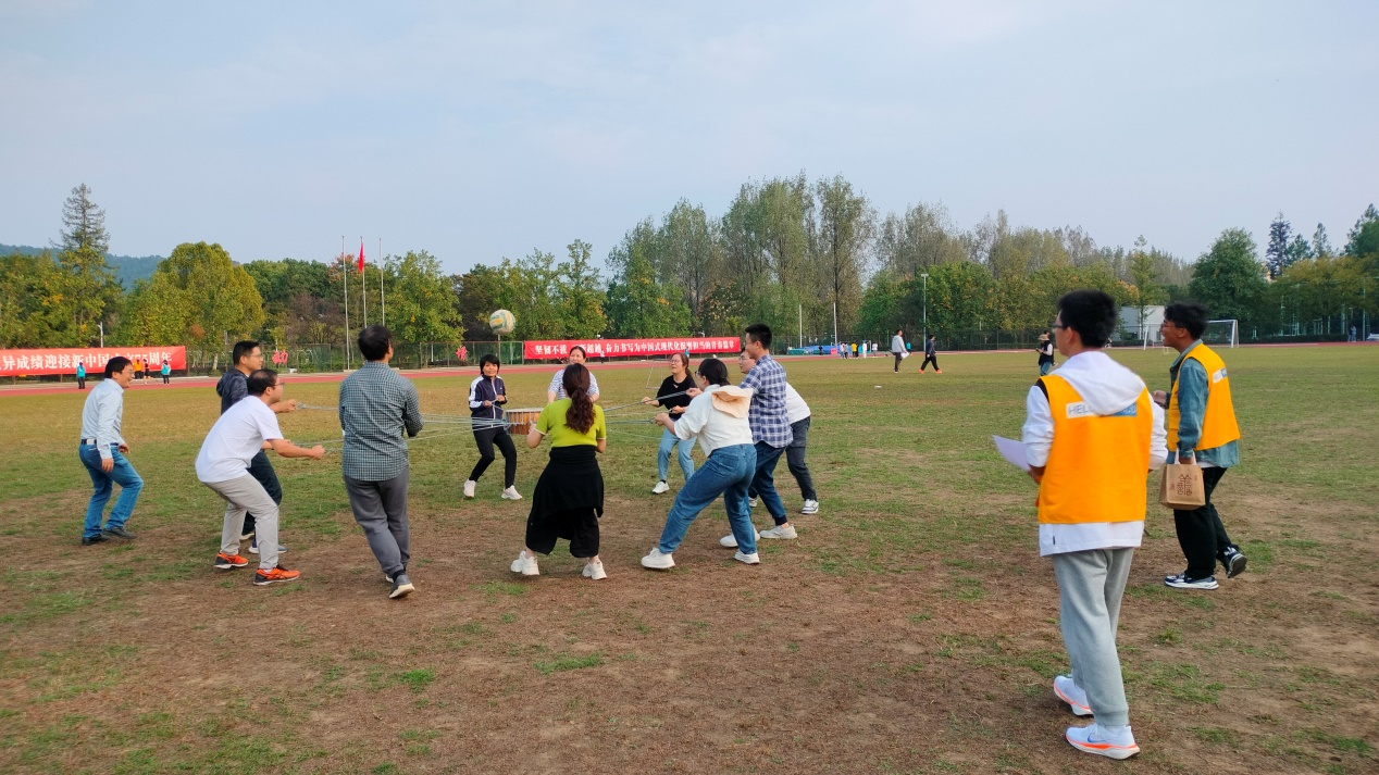 教职工们按学科专业、部门分成5组参赛,就摸石过河、飞镖投准、鼓动人心、合力建塔、集体跳绳和毛毛虫竞速等团体项目展开了激烈角逐。各队默契配合、相互鼓励、你追我赶,现场一片欢声笑语。在顺利完成所有赛事的同时,加深了新老同事认识和情谊,并促进了学院凝聚力。