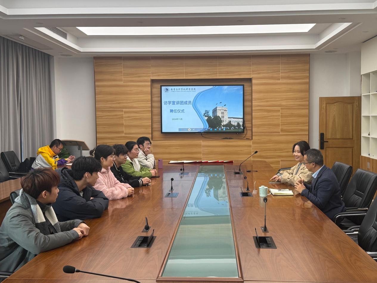 威廉希尔于11月26日在学11-304成功举办了访学宣讲团2024-2025年度培训会议及成员聘任仪式。学院副院长张洪涛、辅导员陈瑞珂及访学宣讲团成员代表参加仪式,仪式由陈瑞珂主持。经过选拔,16名优秀学生被正式聘任为宣讲团成员。