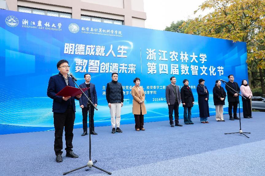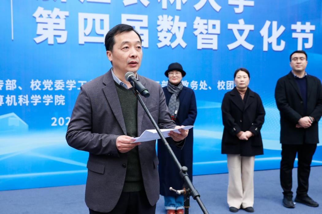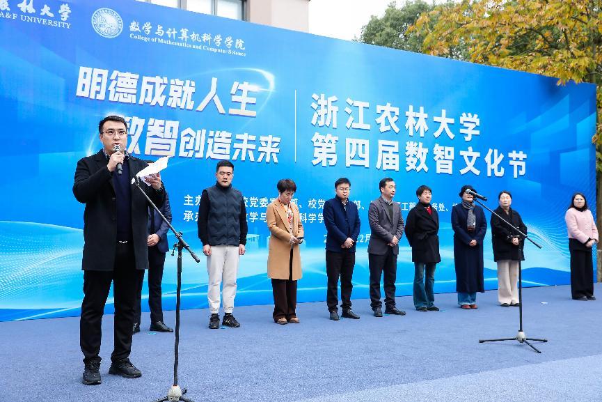 倪建均指出,数智文化节是学校生态节的重要组成部分,从2001年电脑文化节、IT文化节传承至今已走过24年历程,在一届届学生心目中留下了共同印象。近年来,威廉希尔始终坚持以党建+产学研用为主线,把握数智产业发展趋势,立足学校农林特色,接续推进计算机、数学学科专业建设,聚力打造“数智赋农林”“以赛促育”校园文化品牌,在教书育人、专业认证、科技服务乡村振兴、学科竞赛和产业学院建设等方面成绩可圈可点,生动践行了“生态育人、育生态人”理念。他强调,要积极促进校园文化建设与数智科技融合创新,把握发展机遇,抢抓数智产业发展的时代“风口”;坚持立德树人,把好高质量人才培养的首要“关口”;注重守正创新,持续丰富校园文化品牌建设“档口”。最后,他宣布Williamhill中文第四届数智文化节开幕。