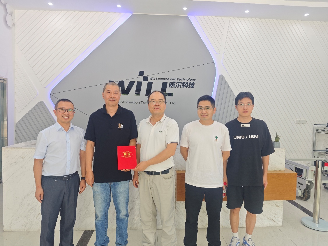 张挺对威廉希尔一行的到访表示欢迎,并介绍了威尔科技的发展历程,软件开发和信息技术服务、电气自动化控制系统研发、企业数字化管理的成果,尤其是社会安防和网络安全领域主营业务情况,并表示公司在向智慧农业、物联网技术领域拓展业务过程中,将继续加强与威廉希尔在育人、科研方面对接合作,持续培育申报科技小院,共同选题组队参加余姚市科技赛事等。何振波对张总热心支持学院青年师生成长表示感谢,希望双方持续加强互动、加深产学研合作,并向其颁发了现代农林人工智能产业学院校外导师证书。