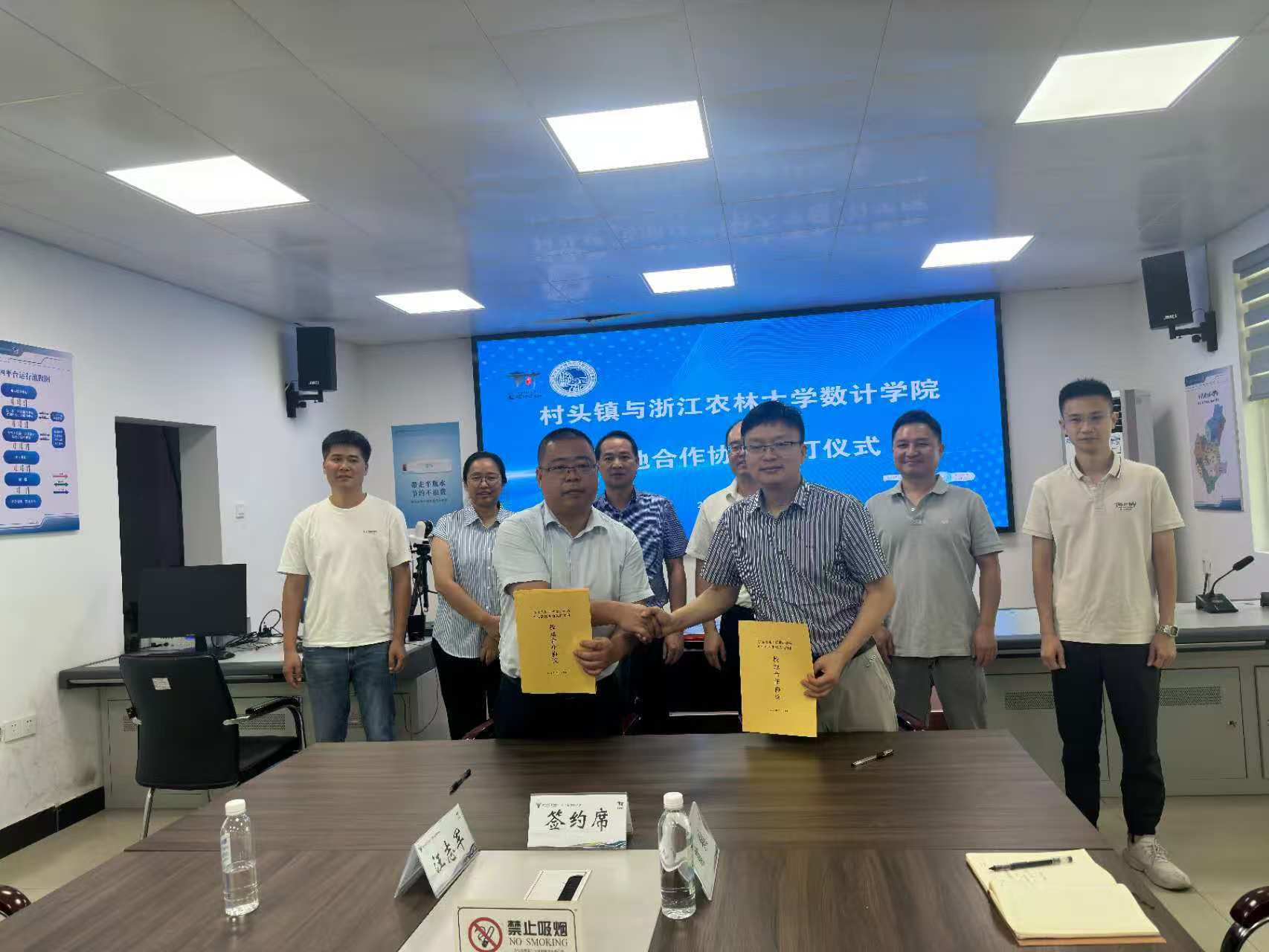 在双方人员共同见证下,冯海林与余志仁代表双方签署协议,。根据协议约定,除科技赋能产业、人才培养培训外,双方还将在科研项目合作与智慧乡村建设领域深度协同:联合申报省市级科技项目,围绕乡村产业、生态保护、碳汇经济开展研究,推动高校科研成果在村头镇转化落地;同时协助村头镇建设未来农场、数字化高标农田系统、物联网监测网络,探索农产品溯源、品牌提升、数字营销新模式。仪式上,学院还向村头镇授牌了“村头镇石畈村未来农村科研实训基地”。