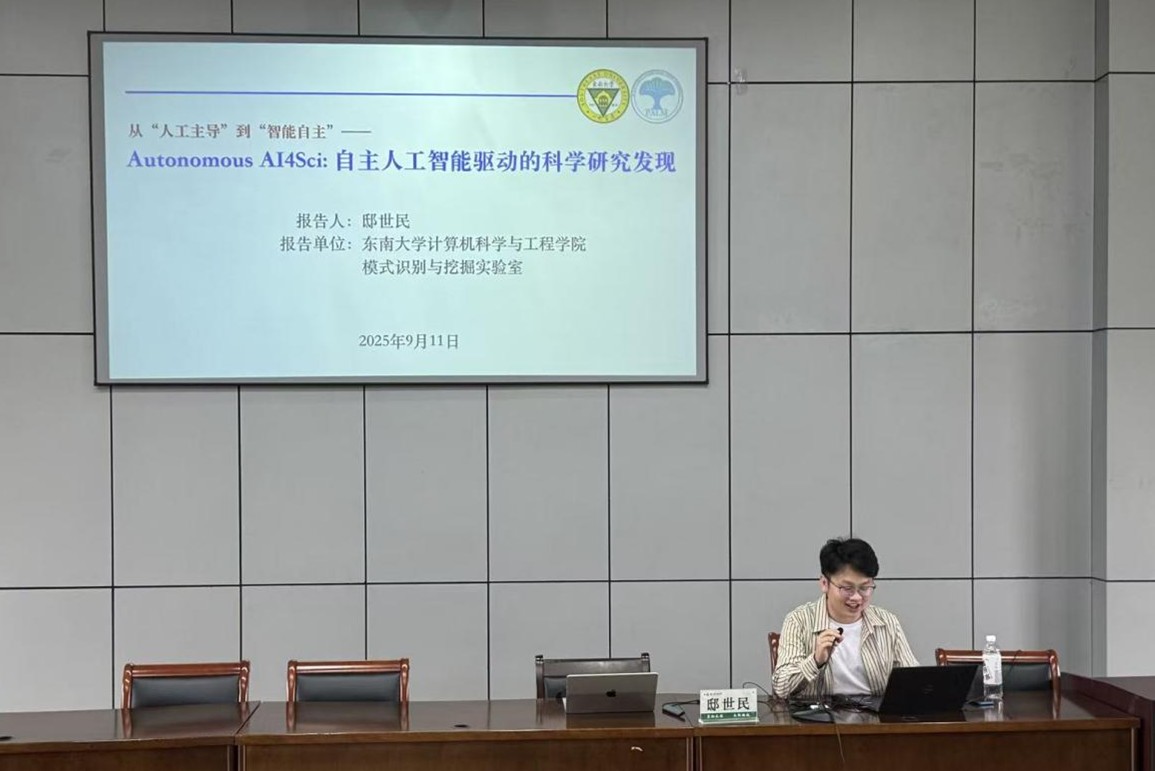 在讲座中,邸世民教授系统介绍了自主人工智能在推动前沿科学研究发现中的关键作用与发展趋势,结合具体案例展示了AI技术在数据处理、模型构建及多学科交叉研究中的创新应用,为在座师生带来了一场内容充实、视野前沿的学术盛宴。