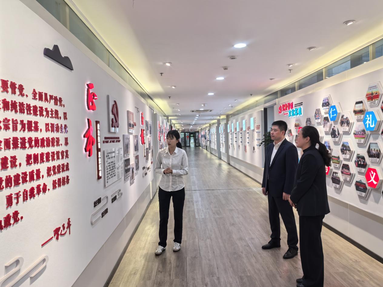 调研期间,企业负责人还带领参观了集团的党建文化长廊,长廊通过丰富的图文资料,系统展示了集团在坚持党的领导、加强党的建设的系统实践以及“情、善、和”的企业文化。