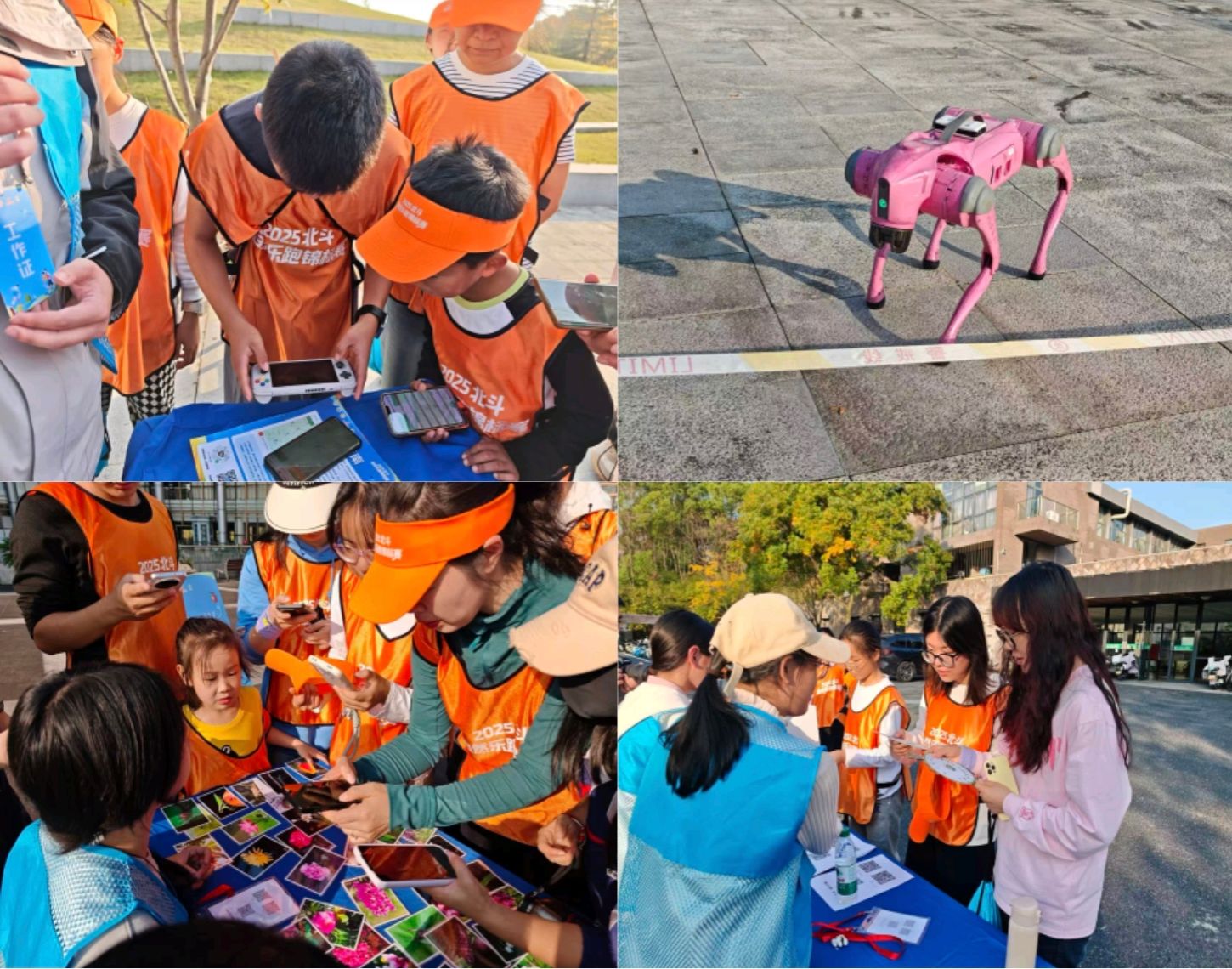 下午14时,赛事在鸣笛声中正式拉开帷幕。参赛选手在北斗导航系统的精准引导下,穿梭于校园的优美环境中,完成了一系列富有挑战性的任务。赛事创新设置了15个打卡闯关点,其中包括12个知识闯关点和3个线下任务点。知识闯关内容涵盖自然科普、双碳目标、北斗导航等前沿议题,线下任务则创新引入AI、机器狗互动、碳汇计算等元素,让参赛者在运动过程中感受科技与自然的完美融合。