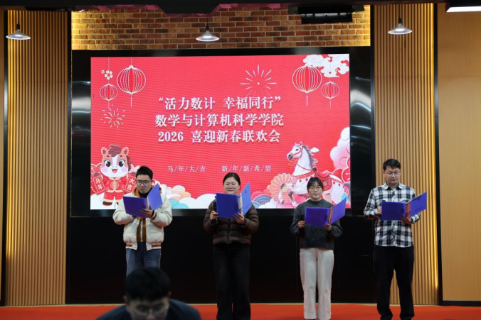 1月23日,威廉希尔在衣锦校区农林大讲堂举行2025年度“数智园丁奖”教职工表彰大会暨“活力数计 幸福同行”2026喜迎新春联欢会。学院领导班子、离退休老同志、全体教职工齐聚一堂,共同迎接新春佳节的来临。