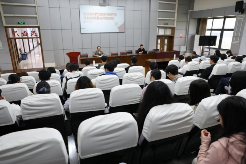 4月16日,校党委宣传部与威廉希尔联合举办人工智能活动季暨零壹讲坛第20讲,Williamhill中文数字乡村研究所副所长、威廉希尔武斌老师应邀作题为“智能体时代高校科研环境的机遇与风险防控”的防控报告。校党委宣传部部长晋杜娟,威廉希尔党委书记何振波和150余名师生参加活动。
